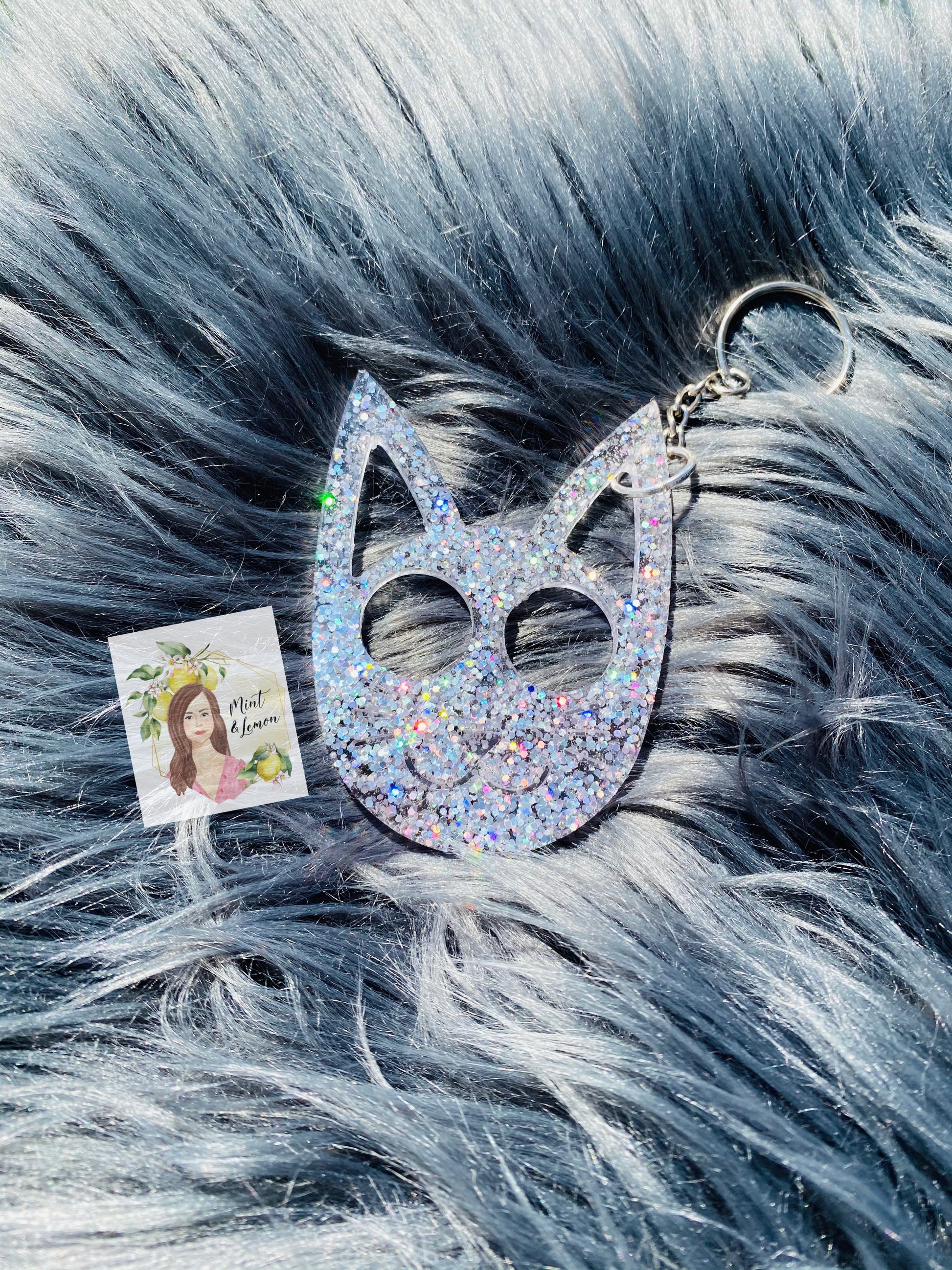 Choose your glitter color for your very own Kitty Defense Keychain!